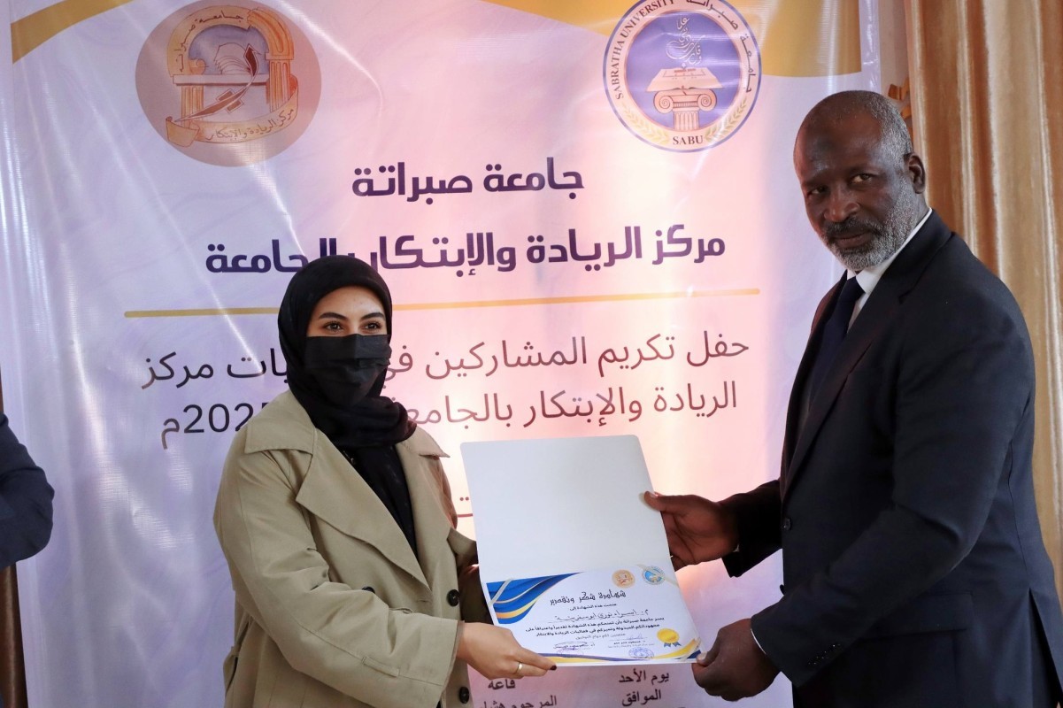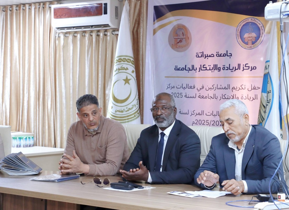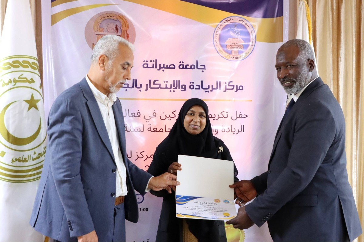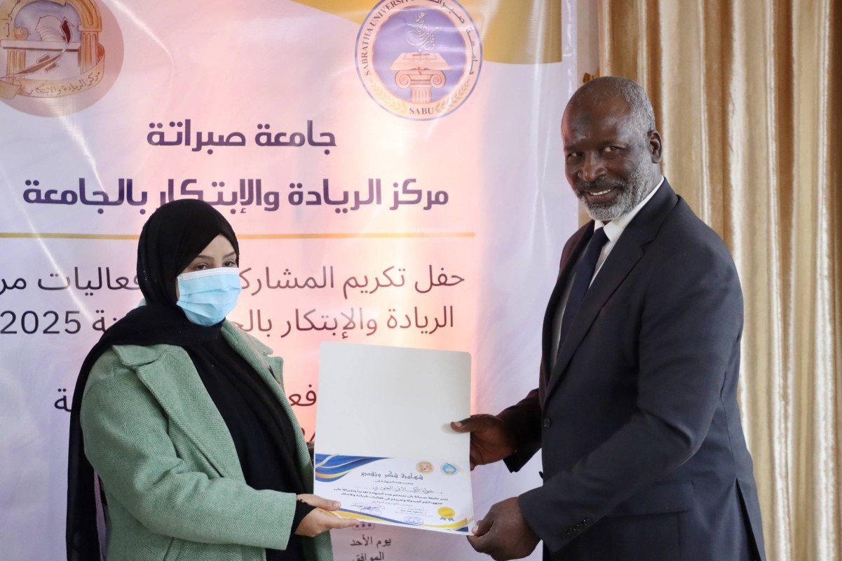 في إطار دعم وتشجيع الكوادر الأكاديمية والإدارية والطلابية، نظم مركز الريادة والابتكار بجامعة صبراتة حفل تكريم بمناسبة مشاركات وإنجازات منتسبي الجامعة خلال العام الجامعي 2024–2025.